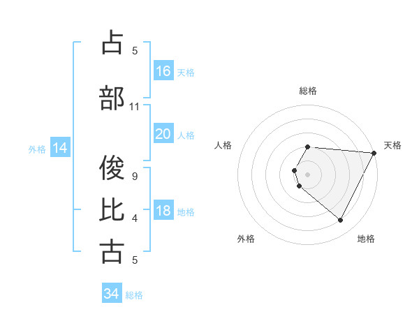 占部 俊比古さんの天格は16画の5点