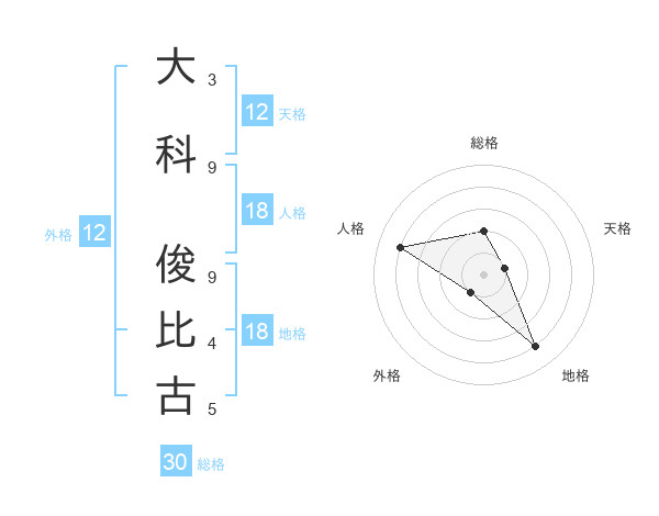 大科 俊比古さんの天格は12画の1点!