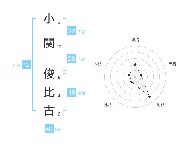 小関 俊比古さんを姓名の画数から五運を鑑定