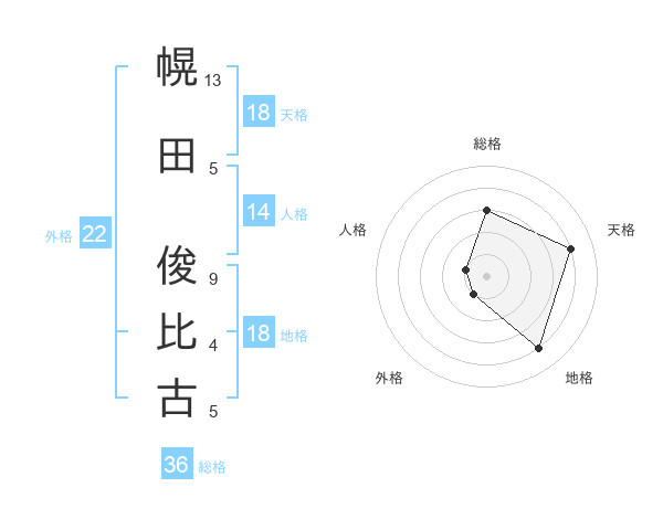 幌田 俊比古さんの総格は36画の3点
