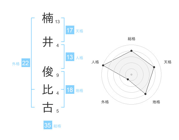 楠井 俊比古さんを姓名の画数から五運を鑑定