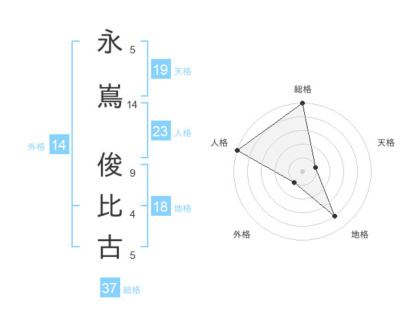 永嶌 俊比古さんを姓名の画数から五運を鑑定