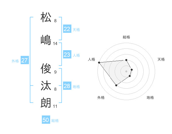 松嶋 俊汰朗さんを姓名の画数から五運を鑑定