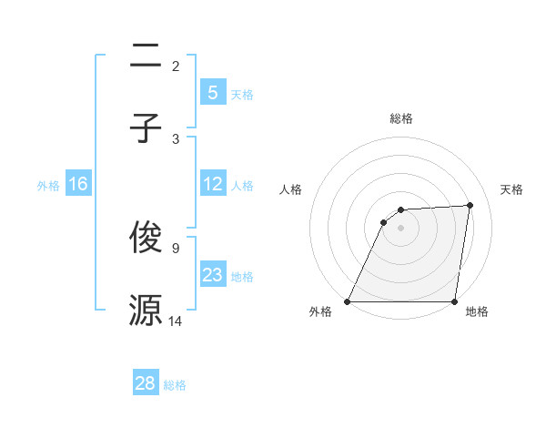 二子 俊源さんの外格は16画の5点!