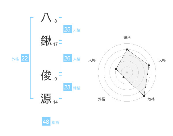 八鍬 俊源さんの天格は25画の4点!