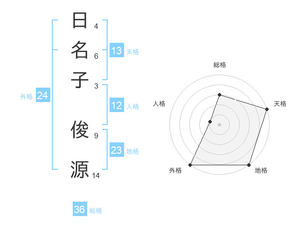日名子 俊源さんを姓名の画数から五運を鑑定