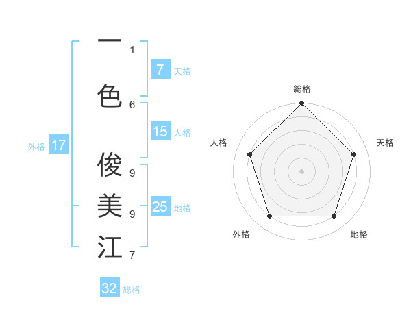 一色 俊美江さんの総格は32画の5点!