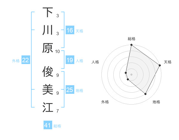 下川原 俊美江さんを姓名の画数から五運を鑑定