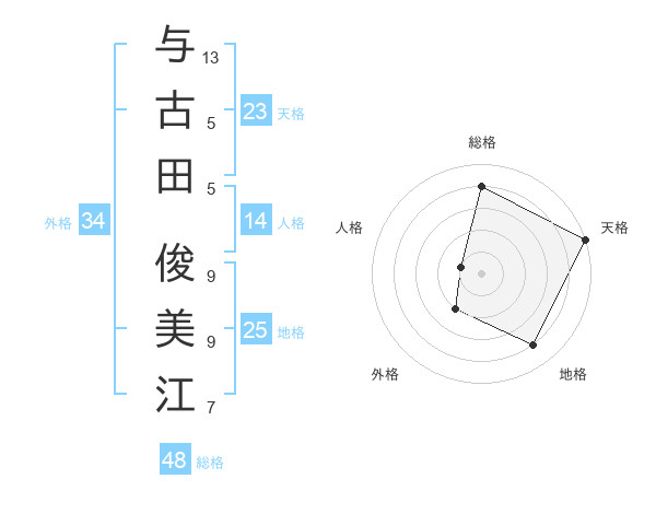 与古田 俊美江さんを姓名の画数から五運を鑑定