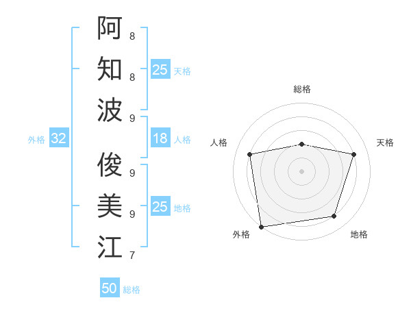阿知波 俊美江さんの天格は25画の4点!