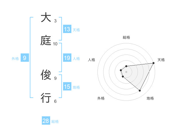 大庭 俊行さんを姓名の画数から五運を鑑定