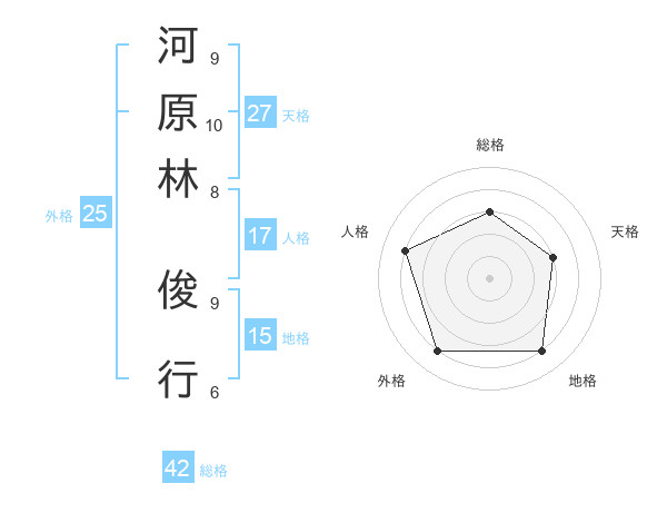 河原林 俊行さんを姓名の画数から五運を鑑定