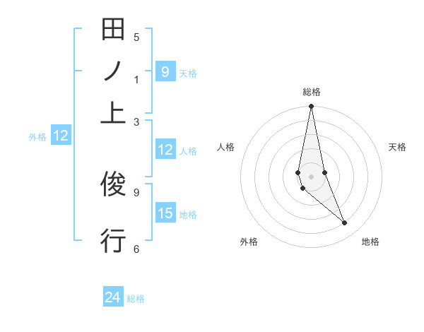 田ノ上 俊行さんの総格は24画の5点!