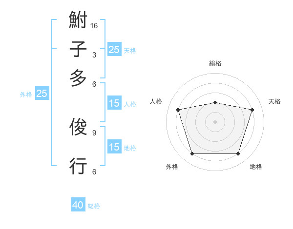 鮒子多 俊行さんを姓名の画数から五運を鑑定