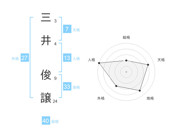三井 俊譲さんを姓名の画数から五運を鑑定