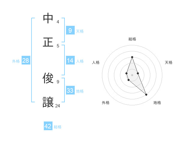 中正 俊譲さんを姓名の画数から五運を鑑定