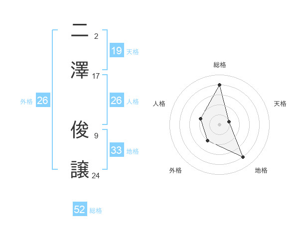 二澤 俊譲さんの総格は52画の4点!