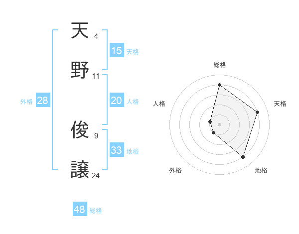 天野 俊譲さんの総格は48画の4点!