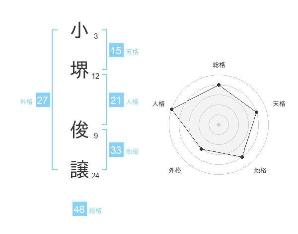 小堺 俊譲さんを姓名の画数から五運を鑑定