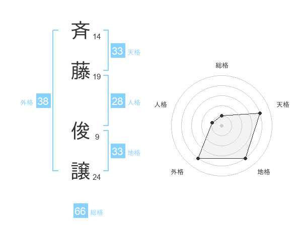斉藤 俊譲さんの総格は66画の1点!