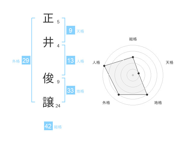 正井 俊譲さんを姓名の画数から五運を鑑定