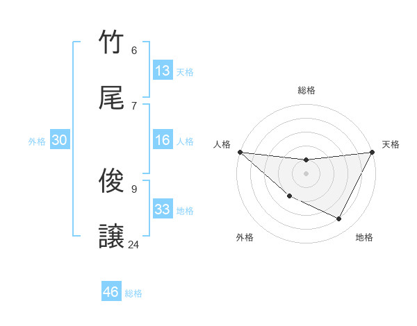 竹尾 俊譲さんの地格は33画の4点!