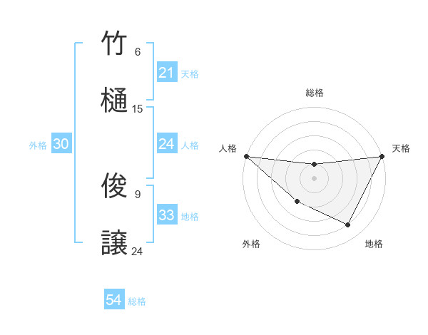 竹樋 俊譲さんを姓名の画数から五運を鑑定