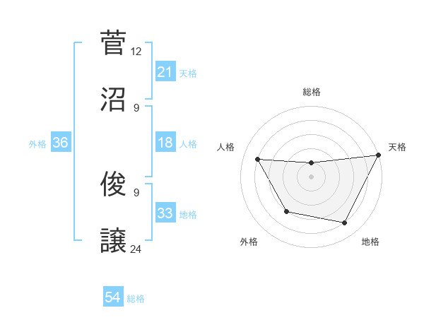 菅沼 俊譲さんを姓名の画数から五運を鑑定