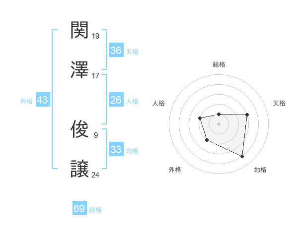 関澤 俊譲さんを姓名の画数から五運を鑑定