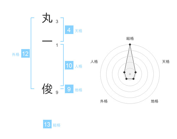 丸一 俊さんの総格は13画の5点!
