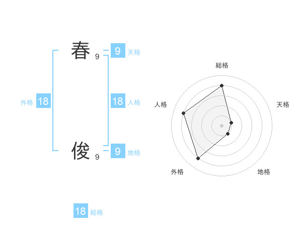 春 俊さんの総格は18画の4点!