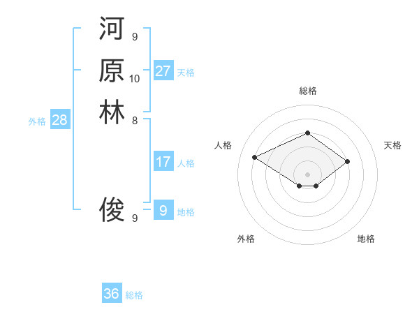 河原林 俊さんの総格は36画の3点!
