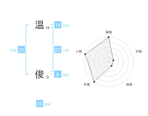 温 俊さんの総格は23画の5点!