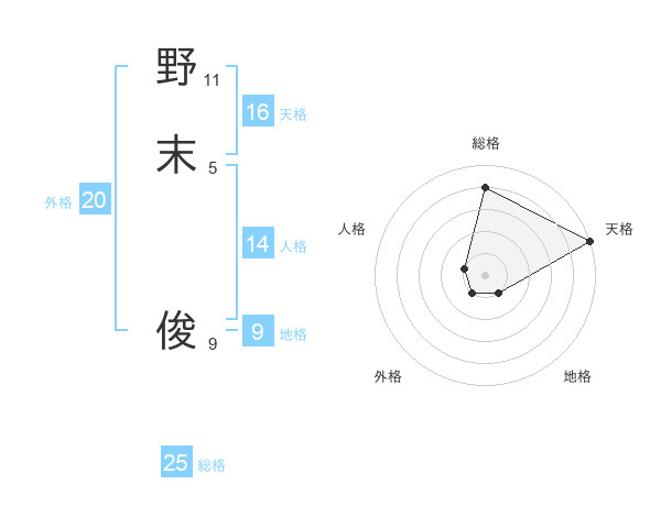 野末 俊さんの総格は25画の4点!