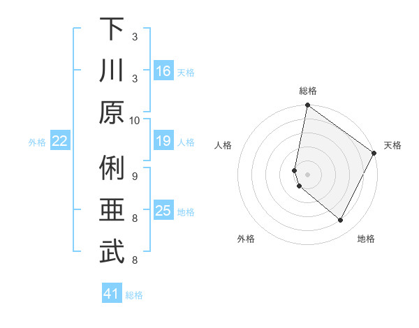 下川原 俐亜武さんを姓名の画数から五運を鑑定