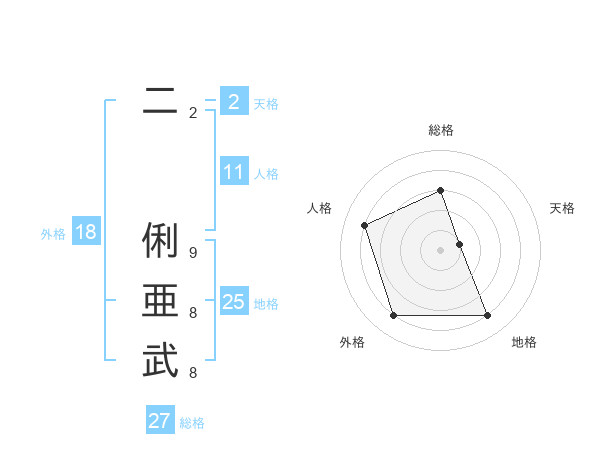 二 俐亜武さんの総格は27画の3点!