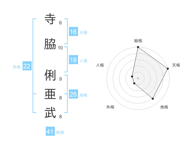 寺脇 俐亜武さんの外格は22画の1点!