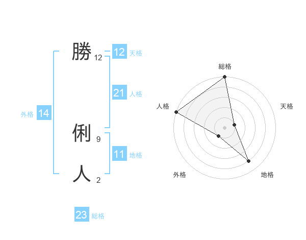 勝 俐人さんの総格は23画の5点!