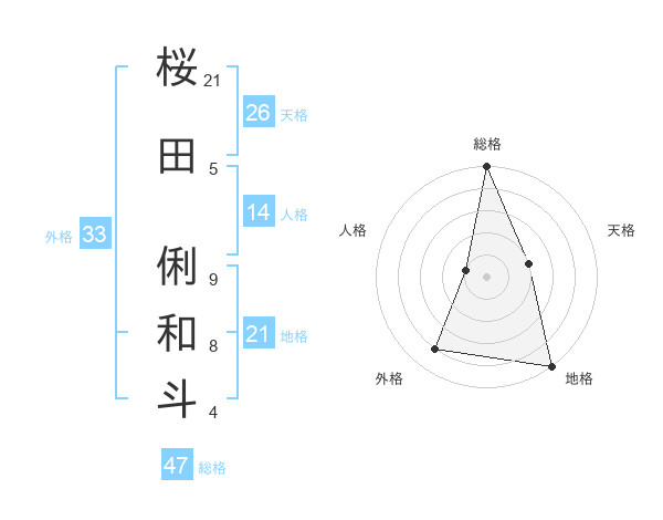 桜田 俐和斗さんを姓名の画数から五運を鑑定