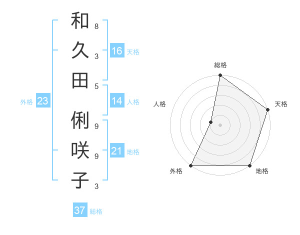 和久田 俐咲子さんの天格は16画の5点!