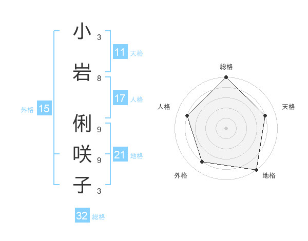 小岩 俐咲子さんの総格は32画の5点!