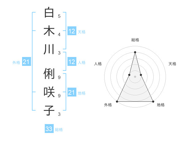 白木川 俐咲子さんを姓名の画数から五運を鑑定