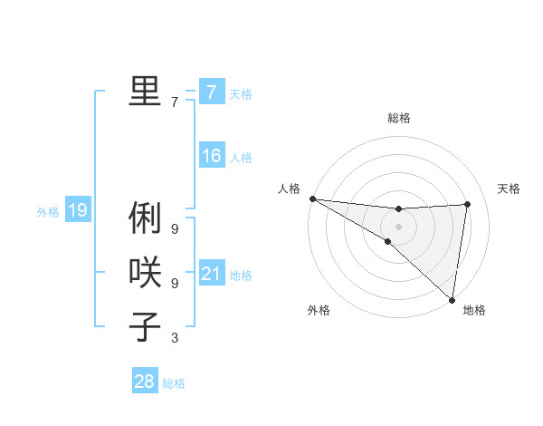 里 俐咲子さんを姓名の画数から五運を鑑定