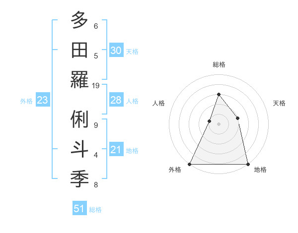 多田羅 俐斗季さんの総格は51画の3点!