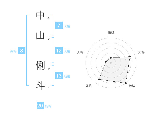 中山 俐斗さんを姓名の画数から五運を鑑定