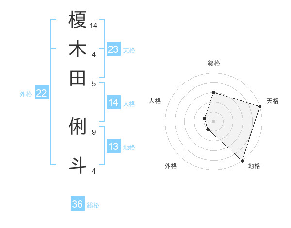 榎木田 俐斗さんの天格は23画の5点!