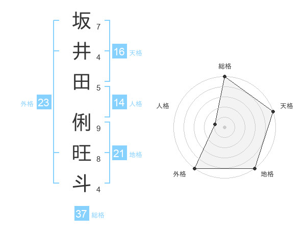 坂井田 俐旺斗さんを姓名の画数から五運を鑑定