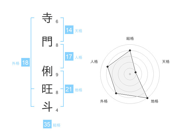 寺門 俐旺斗さんを姓名の画数から五運を鑑定