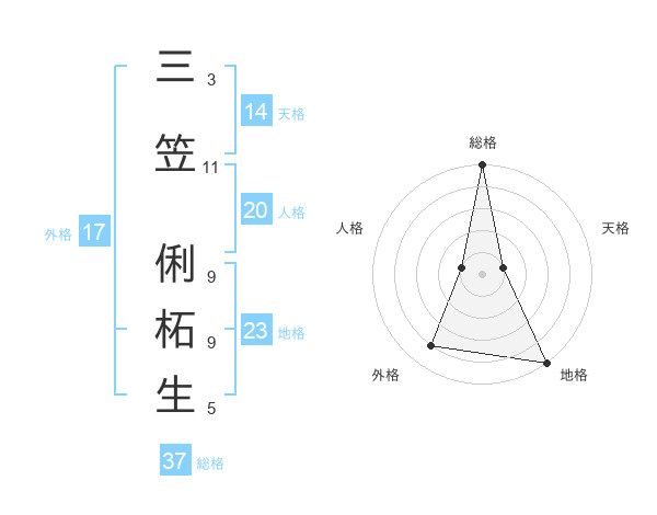三笠 俐柘生さんを姓名の画数から五運を鑑定