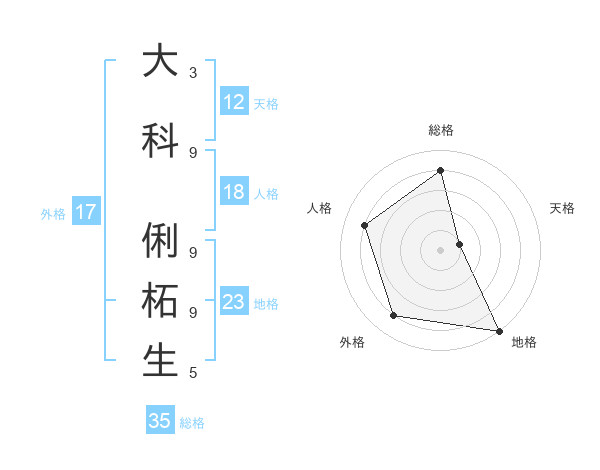 大科 俐柘生さんを姓名の画数から五運を鑑定